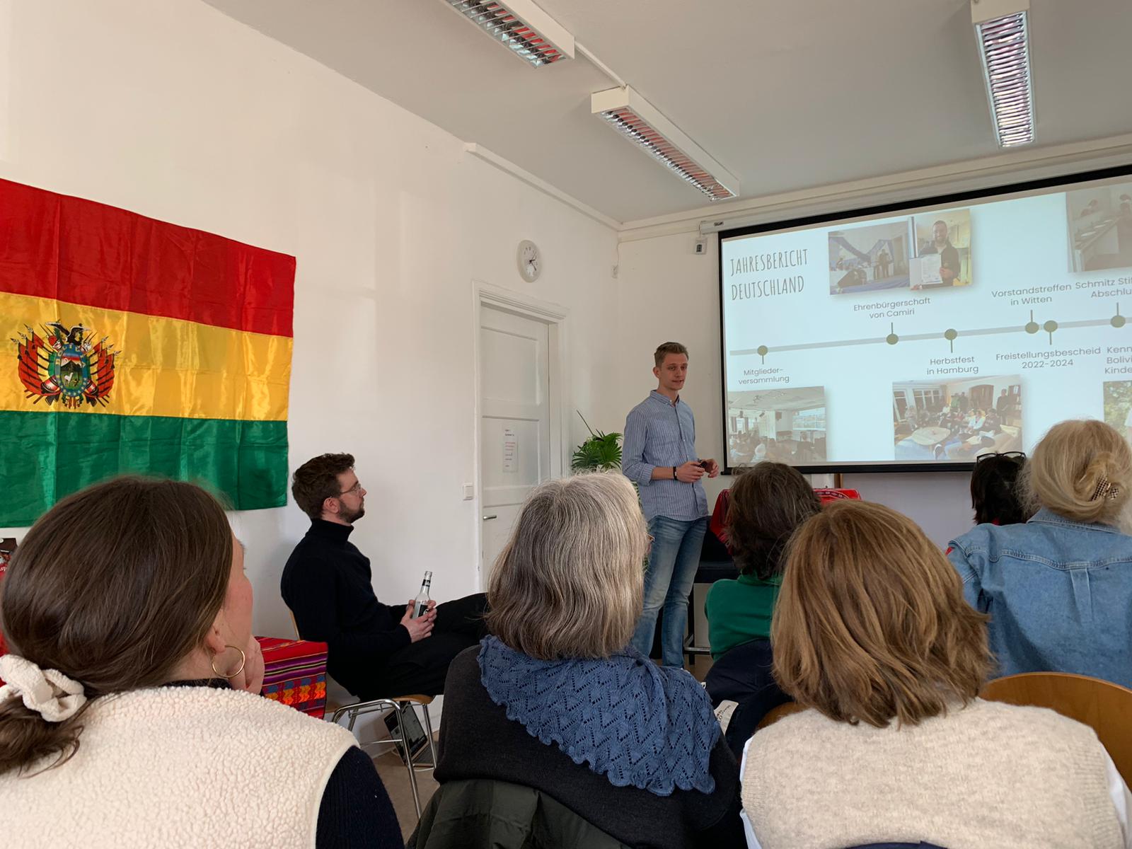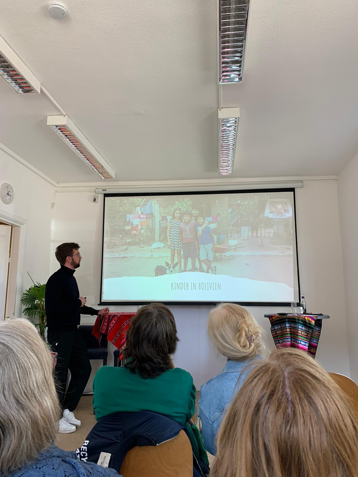 Den Auftakt machte Julius mit einem Bericht über die Zusammenarbeit mit Bolivien und die aktuellen Entwicklungen im Projekt. Anschließend berichtete Zoé, ehemalige Freiwillige, von ihrem Arbeitsalltag im Projekt und zeigte Bilder aus ihrer Zeit in Camiri. Hanna, die erst kürzlich zum zweiten Mal vor Ort war, schilderte den Schuljahreswechsel zu Beginn des Jahres und stellte die neu eingestellten Lehrkräfte vor. Beide Berichte waren sehr lebhaft und kamen bei den Anwesenden sehr gut an.