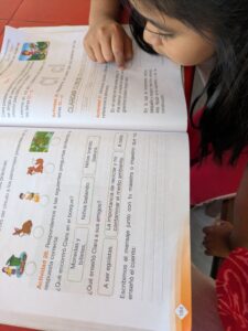 Mein Arbeitsalltag spielt sich größtenteils in der jüngsten Gruppe ab, bei den 6- bis 8-Jährigen, gemeinsam mit Profe Fabiola. Wir helfen bei den Hausaufgaben, üben Lesen, gestalten carátulas (Deckblätter), flechten Haare, kümmern uns – wenn nötig – um Läuse und lassen immer wieder spontan kleine Kunstprojekte entstehen. Es ist erstaunlich, wie schnell man sich hier zugehörig fühlt; selten habe ich einen Ort erlebt, an dem Ankommen so leichtfällt.