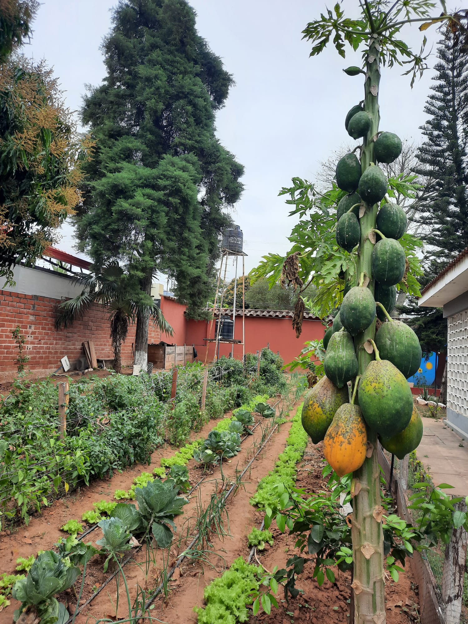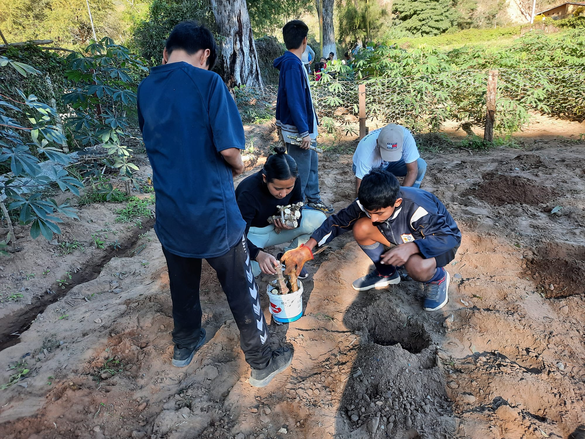 Ich habe meistens bei den kleineren Kindern unterstützt, da diese Gruppe mit etwa 12 Kindern recht groß ist, die Kinder sehr unterschiedliche Lernstände haben und einige noch viel Hilfe benötigen. Die Lehrerin dieser Gruppe, Fabiola, hat ein großes Spektrum an Aufgaben – von Erklären, Motivieren, Üben, Beschaffen von Material und Kleidung für die Kinder, Ideen für Bastel- und Malaktivitäten, Regeln vermitteln bis zu Hygienemaßnahmen, wo auch ich mich einbringen durfte. Hier habe ich insbesondere mit zwei kleinen Kindern gearbeitet; es war anstrengend und mühsam für die beiden, sich länger zu konzentrieren und die Aufgaben wie Lesen, Schreiben und Rechnen zu bewältigen, neben den ganz alltäglichen Aktivitäten. Mit Geduld, Humor und guten Ideen ging es dann aber doch. Es war schön, Fortschritte insbesondere beim Lesen zu sehen. Die Kinder dieser Gruppe sind sehr offen, vertrauensvoll und ohne Berührungsängste, und so ergab sich eine gute Beziehung und viel Freude im täglichen Beisammensein. Wir waren auch zusammen im Gartenprojekt, um Unkraut zu jäten, zu bewässern oder Yucca zu pflanzen. In dem kleineren Gemüsegarten beim Haus werden mit Hilfe des Gärtners verschiedene Gemüse angebaut, die dann in der Küche für das Essen der Kinder verarbeitet werden, z.B. Tomaten, Möhren, Mangold, Salat, Paprika, Zwiebeln und Kohl. Es gibt beim Haus auch ein paar Papayabäume, deren Früchte wir nach und nach ernten konnten. Im etwas entfernten größeren Gemüsegarten werden hauptsächlich Yucca und Süßkartoffeln angebaut, die etwas mehr Zeit zum Wachsen und nicht so viel Wasser brauchen. Auf diese Weise soll der Anbau von gesundem Gemüse von den Kindern erlernt und das Essen in der Fundación abwechslungsreicher und mit mehr Gemüse und Obst zubereitet werden.