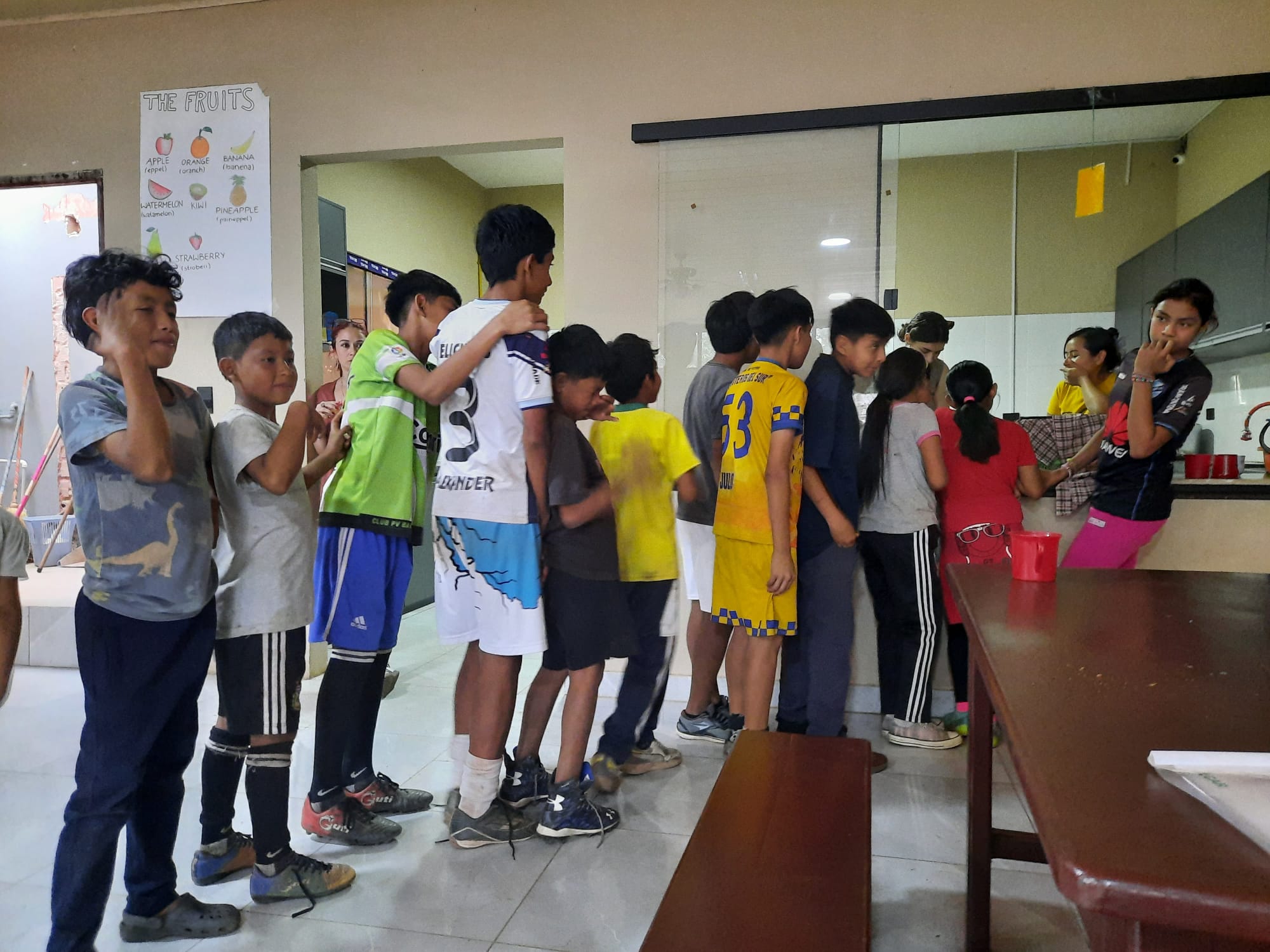 Der normale Tagesablauf in der Fundación ging folgendermaßen: vormittags hatte ich erstmal Zeit, um mich um meine eigenen Angelegenheiten zu kümmern, also Frühstück, Einkaufen auf dem Markt, Sport oder Spanisch lernen. Um 9 Uhr kommen die Köchinnen in die Fundación, um mit den Vorbereitungen für das Mittagessen der Kinder zu beginnen. Ab ca. 11 Uhr wird von den Mitarbeitern und Freiwilligen der Raum und der Hof für die Ankunft der Kinder vorbereitet. Ab 11:30 Uhr kommen die ersten Kinder aus der Schule, die auch bei den Vorbereitungsarbeiten mithelfen und danach Zeit zum Spielen haben. Es wird Fußball auf dem Hof gespielt oder drinnen alles Mögliche zwischen Halli Galli, Memory, Schwarzer Peter, Uno und anderen Spielen, bei denen ich eine beliebte Spielpartnerin war. Ungefähr 50 bis 55 Kinder zwischen 6 und 18 Jahren besuchen die Einrichtung wochentags.